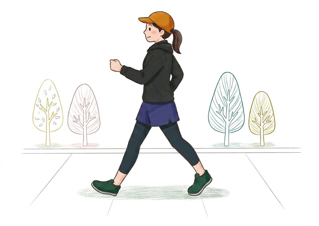 - 「歩き出し」に、かかとをトントン! 外に出る直前、椅子に座ったままでもOKです。「かかと」で床を優しくトントンと叩いてみてください。これだけで脳に「今から歩くよ!」とスイッチが入り、足裏のセンサーが目覚めます。足・膝・腰がチームプレイで衝撃を逃がせるようになりますよ。