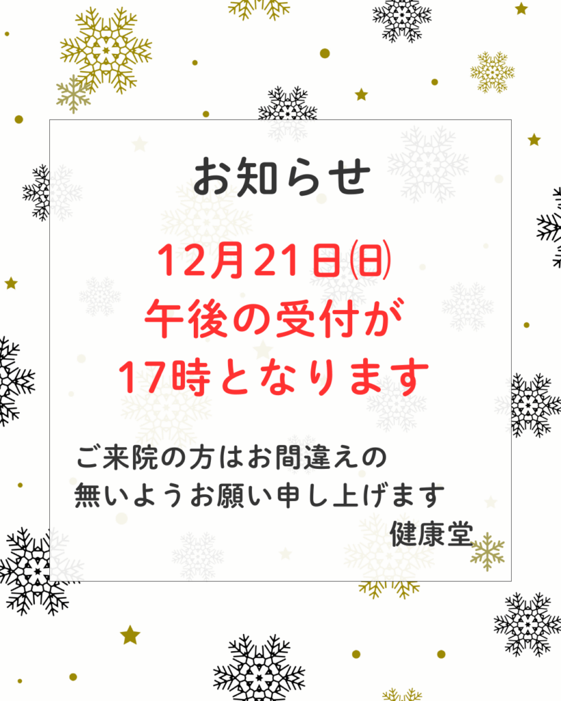 12月21日は受付が17時となります。